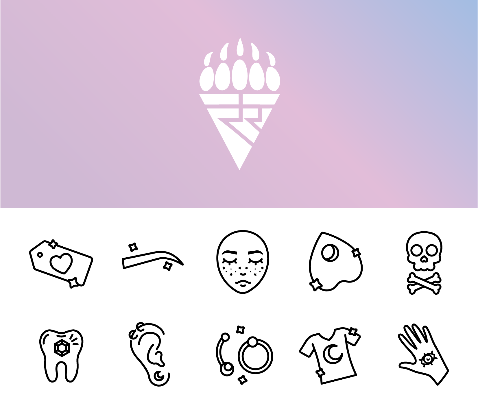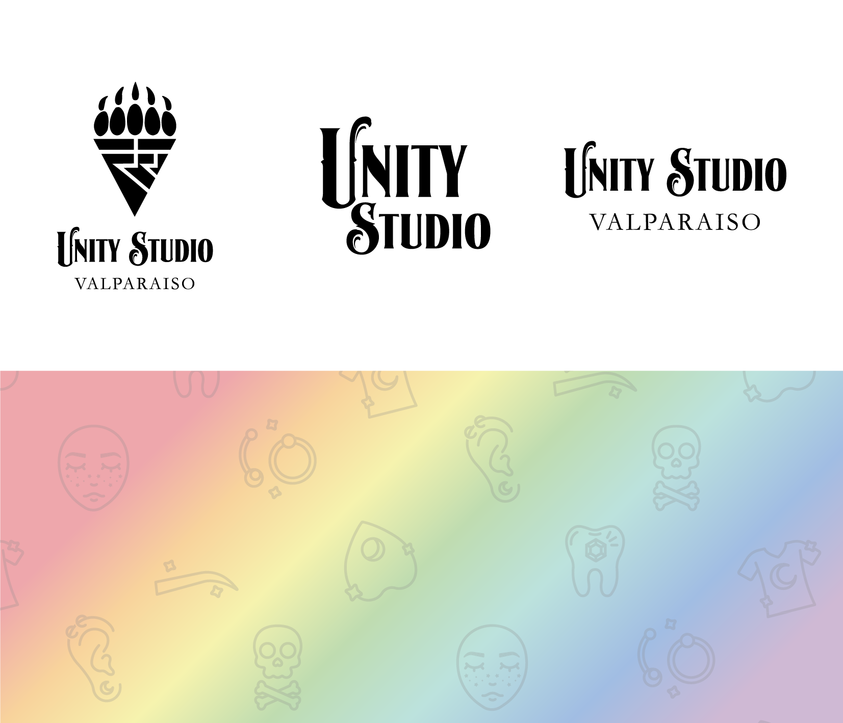 Unity Studio is an LGBTQ+ owned and operated tattoo shop providing a diverse array of services, including tattoos, microblading, piercings, and tooth gems. My assignment involved refreshing their branding, logo and secondary logos, and designing a series of icons to represent both their services and talented artists.